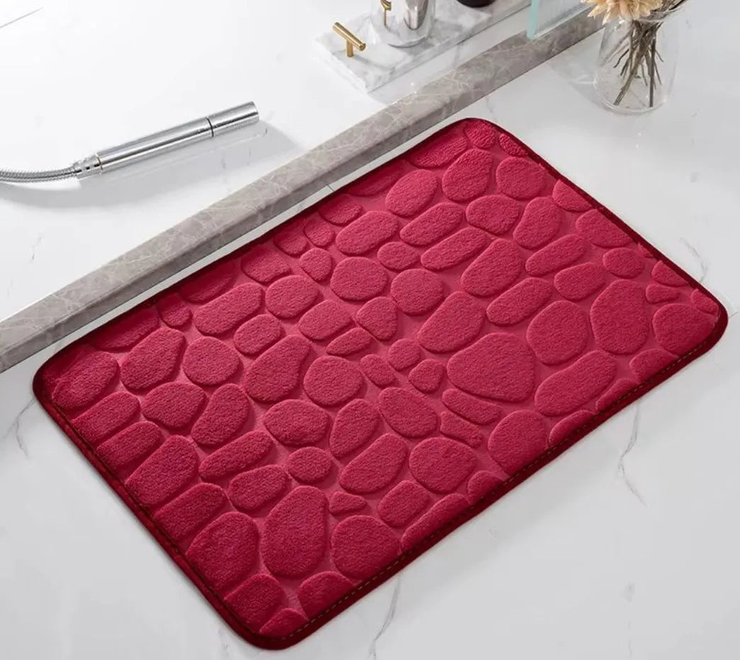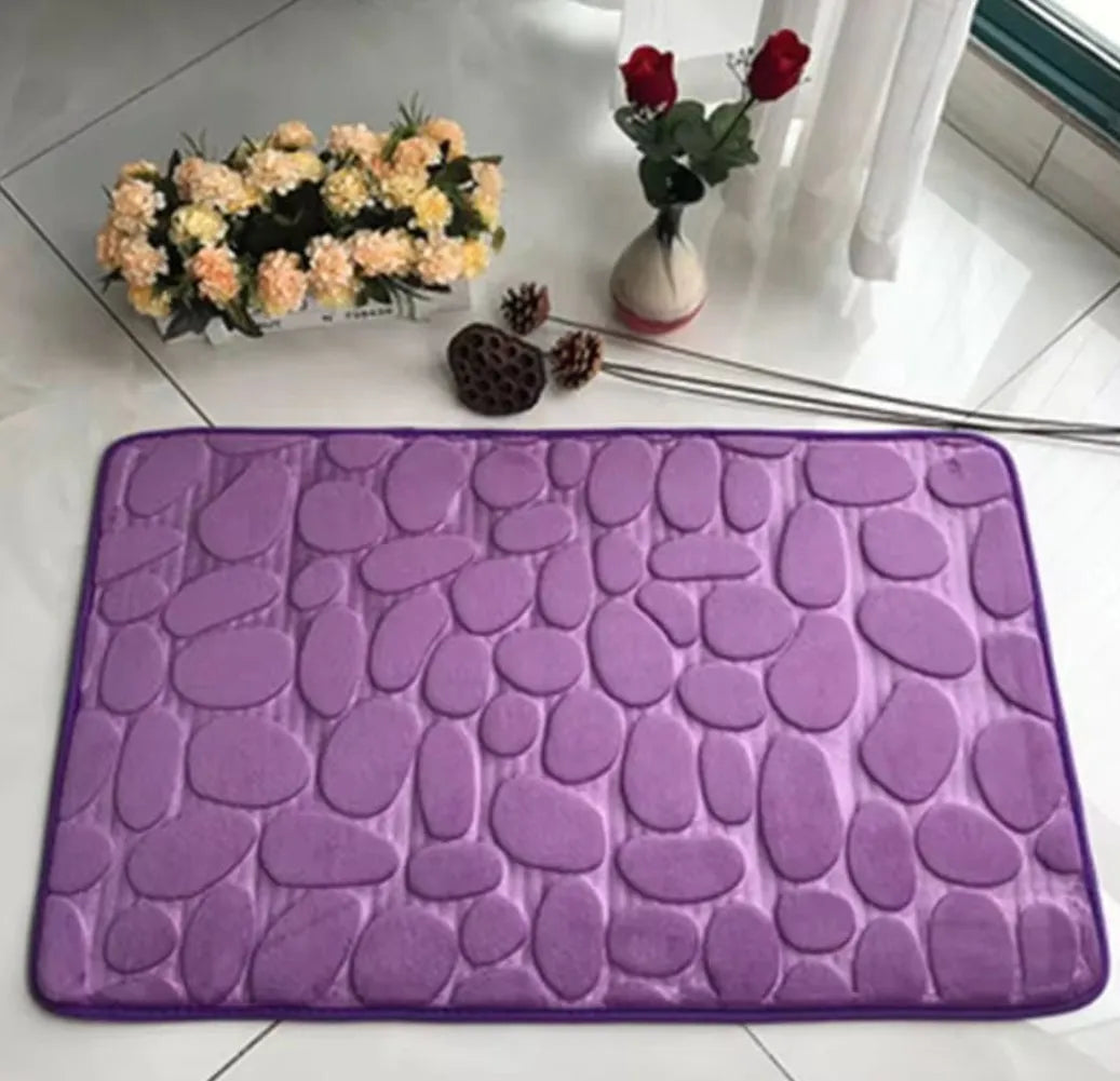 Non-Slip Memory Foam Bath Rug - Cobblestone Embossed Design for Bathroom, Shower Room, and Bath Tub